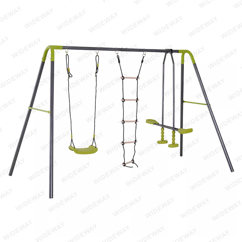 ¡Dé a sus hijos la oportunidad de disfrutar de una auténtica experiencia de juego en un lugar seguro! El juego de columpios para niños 3 en 1 para patio trasero con columpio, deslizador y escalera para trepar de WIDEWAY® hace que entretener a los niños sea muy fácil. Fabricado con tubos metálicos de alta resistencia, el columpio es resistente a la intemperie para ofrecer un uso confiable y a largo plazo. Por el nombre del producto que puede ver, hay 1 columpio, 1 planeador con reposapiés y 1 escalera de cuerda para escalar, ¡para que sus hijos se diviertan durante horas!
