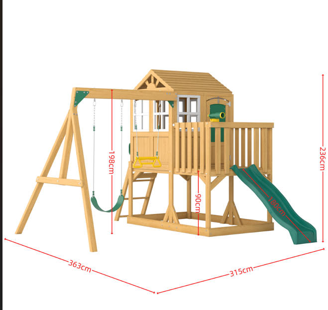 Ya sea que esté buscando fomentar un tiempo al aire libre más activo o crear un oasis juguetón para sus hijos, este juego de madera es una elección fantástica. Trae al patio de recreo a casa, proporcionando beneficios para la diversión y el desarrollo.