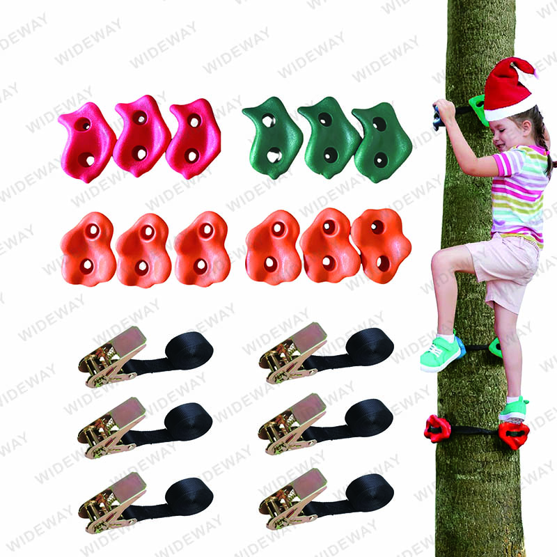 El kit de escalada Ninja Tree es el complemento perfecto para cualquier aventura al aire libre, alentando a los niños a escalar y explorar. Este set robusto incluye sujeciones de escalada PE de 12 piezas y correas de trinquete de 6 piezas para una instalación segura en árboles o paredes interiores. Hecho con cintas duraderas de poliéster y tapas de escalada de educación física, el kit de escalada Ninja Tree está construido para durar e inspirar confianza.